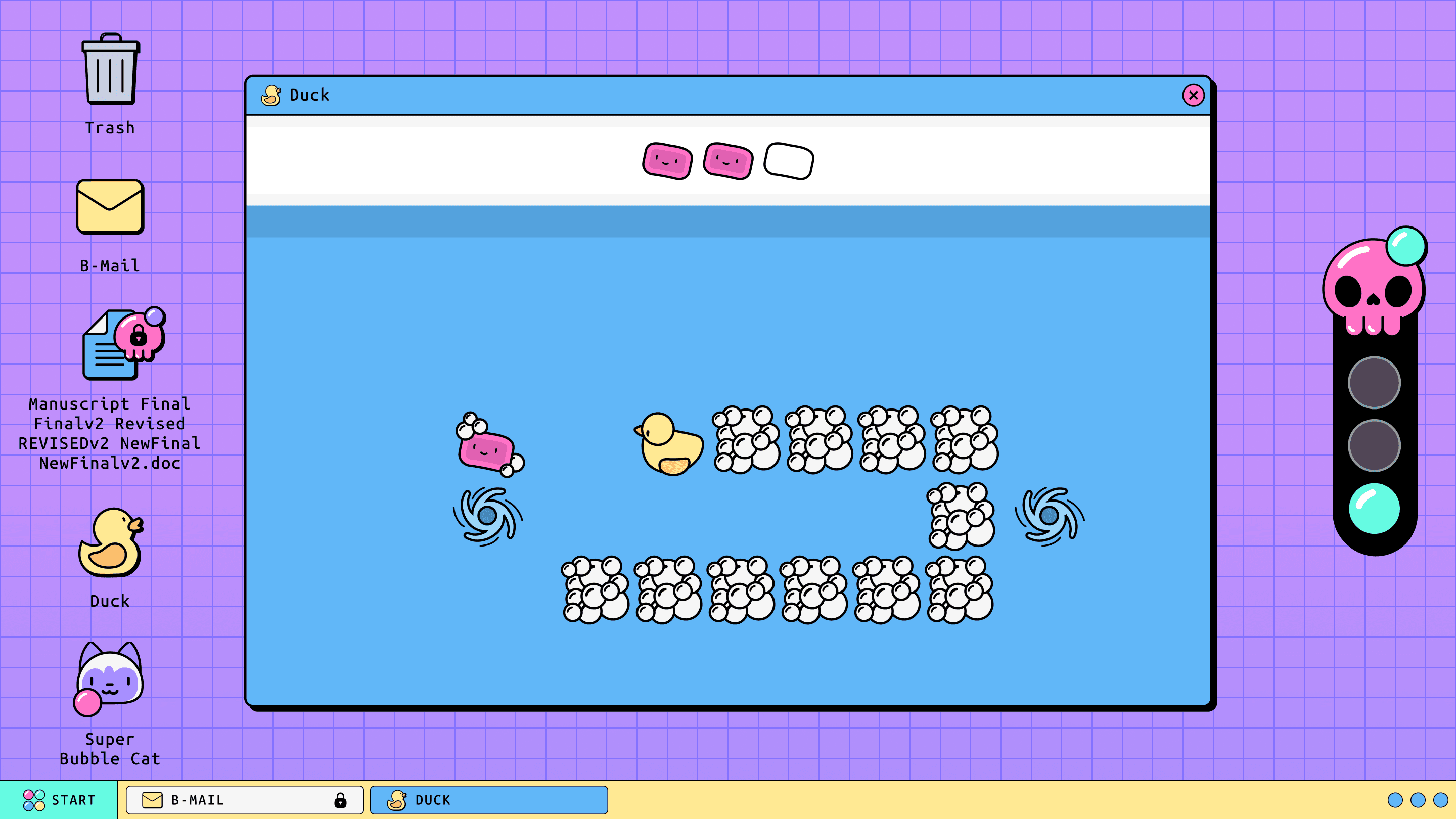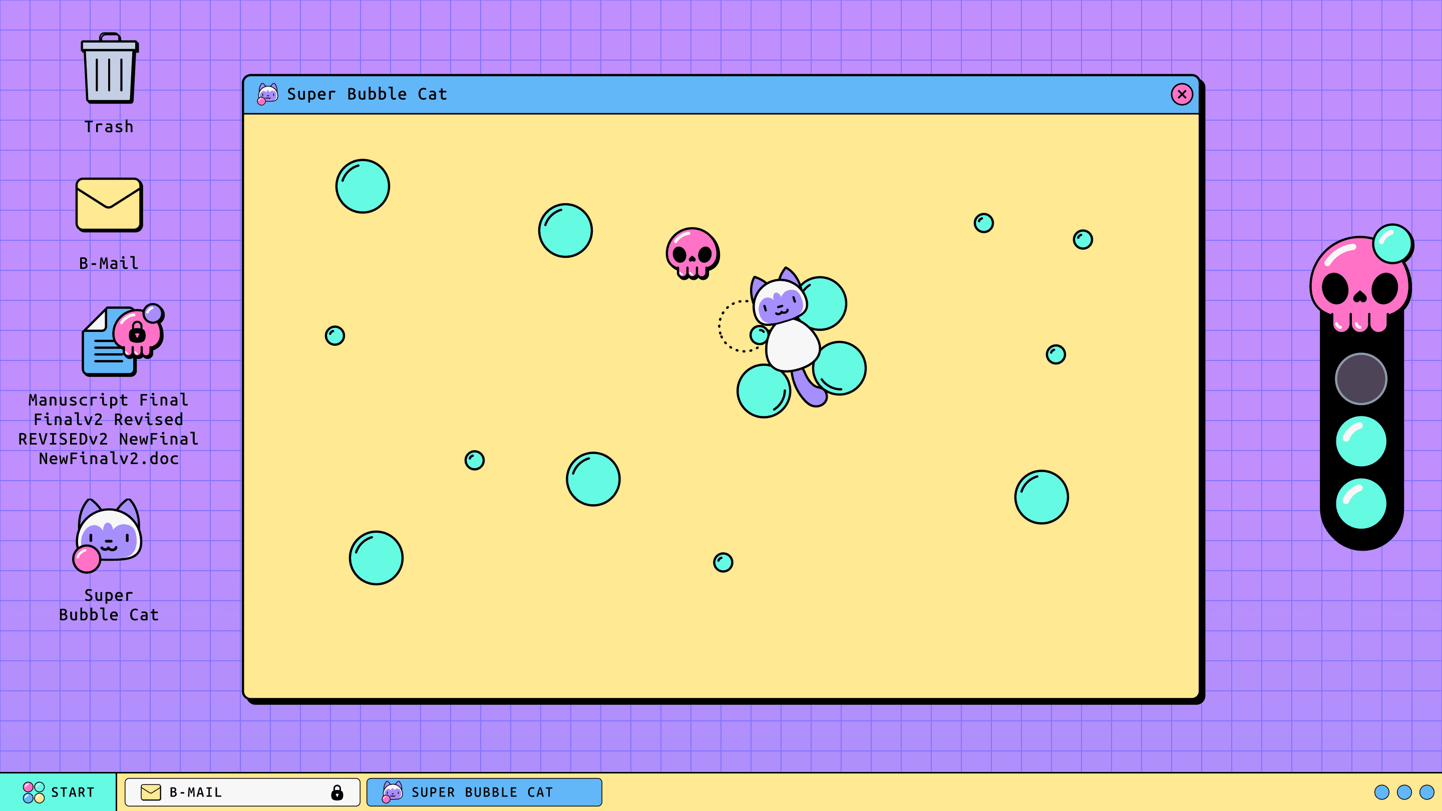 Developer Patrick Woodcock and I teamed up to make BubbleOS in 48 hours at the 2025 Global Game Jam, which had the theme 'bubble'.